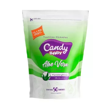 Toallitas Candy Aloe Vera cierre ziplox x 50 unidades